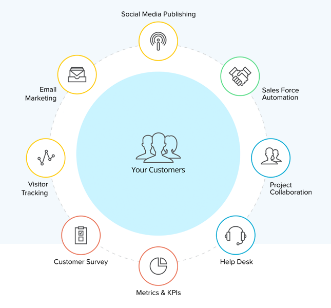 Todas las piezas incluidas en el “rompecabezas” de Zoho CRM Plus: